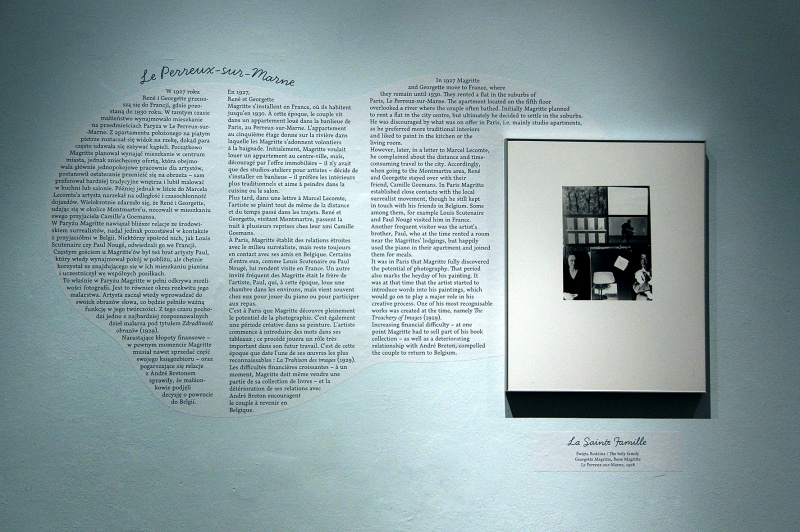 The collection of photographs by Rene Magritte has a very informal character. In fact Magritte himself never showed them to the public. Some of the photographs present Magritte's friends, some are photographic sketches for paintings, and other show Magritte himself. Designing the exhibition we wanted to reveal sketchy and informal nature of this collection. We chose a script font, often present in Magritte’s paintings. We treated the walls of the gallery as if they were pages of the artist’s sketch book. We’ve designed some of the texts in shapes of clouds characteristic for Magritte’s art. We also decided to create a visual dialog with the photographs and play with them. We’ve designed drawings that were complementary to the photographs. Sometimes we wanted to show what might be out of the frame of the photograph, sometime it was just a funny drawing. We invited an artist Bogdan Achimescu to draw the images directly on the gallery walls.