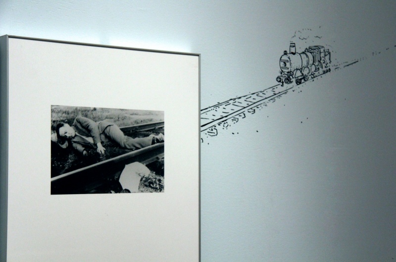 The collection of photographs by Rene Magritte has a very informal character. In fact Magritte himself never showed them to the public. Some of the photographs present Magritte's friends, some are photographic sketches for paintings, and other show Magritte himself. Designing the exhibition we wanted to reveal sketchy and informal nature of this collection. We chose a script font, often present in Magritte’s paintings. We treated the walls of the gallery as if they were pages of the artist’s sketch book. We’ve designed some of the texts in shapes of clouds characteristic for Magritte’s art. We also decided to create a visual dialog with the photographs and play with them. We’ve designed drawings that were complementary to the photographs. Sometimes we wanted to show what might be out of the frame of the photograph, sometime it was just a funny drawing. We invited an artist Bogdan Achimescu to draw the images directly on the gallery walls.