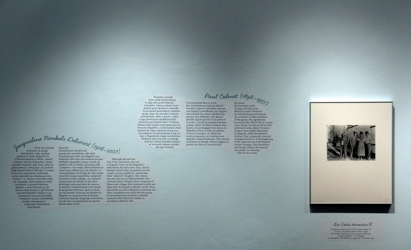 The collection of photographs by Rene Magritte has a very informal character. In fact Magritte himself never showed them to the public. Some of the photographs present Magritte's friends, some are photographic sketches for paintings, and other show Magritte himself. Designing the exhibition we wanted to reveal sketchy and informal nature of this collection. We chose a script font, often present in Magritte’s paintings. We treated the walls of the gallery as if they were pages of the artist’s sketch book. We’ve designed some of the texts in shapes of clouds characteristic for Magritte’s art. We also decided to create a visual dialog with the photographs and play with them. We’ve designed drawings that were complementary to the photographs. Sometimes we wanted to show what might be out of the frame of the photograph, sometime it was just a funny drawing. We invited an artist Bogdan Achimescu to draw the images directly on the gallery walls.