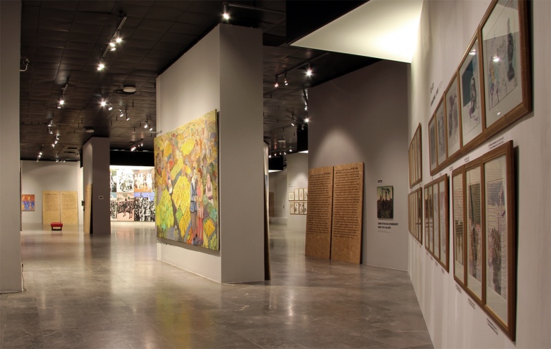Inspired by Gorczyca and Kaczyński's text as well as Dominik Kuryłek curatorial text "Edward Dwurnik Madness" we've tried to capture the image of the "Polish civilisation of madness" portrayed in Dwurnik's art. As the main design motive we've chosen the neverending, crooked, polish construction work process. The provisional world. We kept all the division walls raw with visible joints. All the text were printed on construction  panels and standing as if they were left in the Museum by construction workers.
