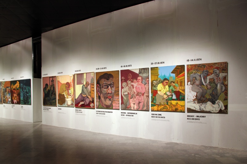 Inspired by Gorczyca and Kaczyński's text as well as Dominik Kuryłek curatorial text "Edward Dwurnik Madness" we've tried to capture the image of the "Polish civilisation of madness" portrayed in Dwurnik's art. As the main design motive we've chosen the neverending, crooked, polish construction work process. The provisional world. We kept all the division walls raw with visible joints. All the text were printed on construction  panels and standing as if they were left in the Museum by construction workers.