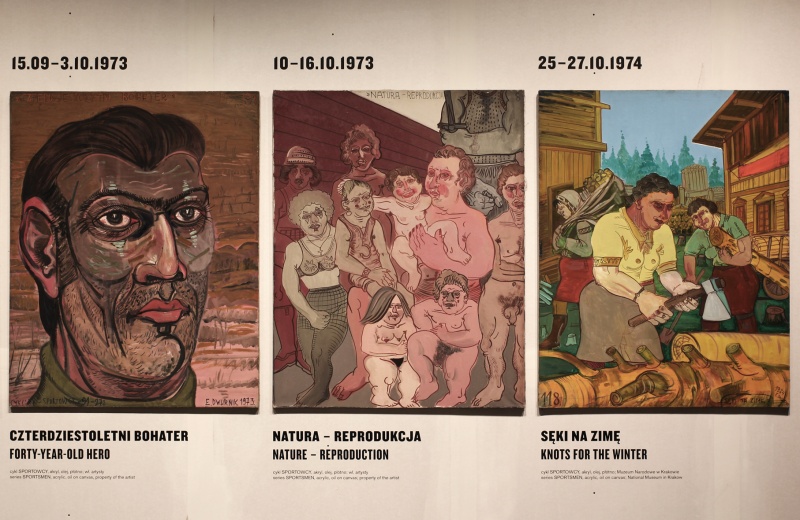 Inspired by Gorczyca and Kaczyński's text as well as Dominik Kuryłek curatorial text "Edward Dwurnik Madness" we've tried to capture the image of the "Polish civilisation of madness" portrayed in Dwurnik's art. As the main design motive we've chosen the neverending, crooked, polish construction work process. The provisional world. We kept all the division walls raw with visible joints. All the text were printed on construction  panels and standing as if they were left in the Museum by construction workers.